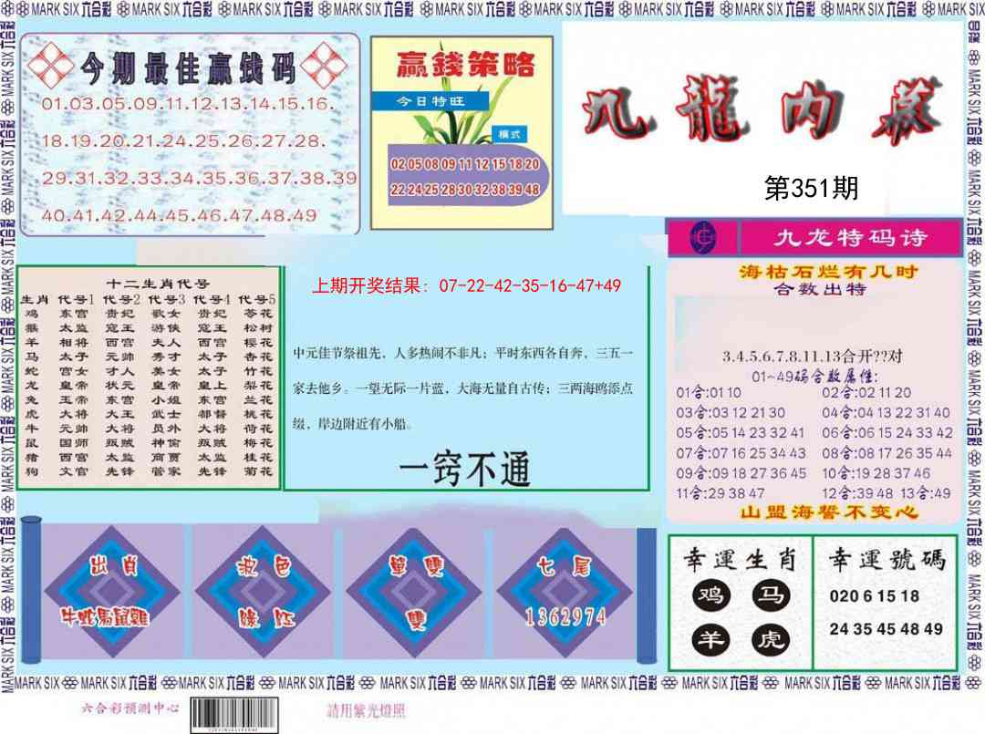 351期:【期期大中】《每天七码》独家发表√ 【期期大中】