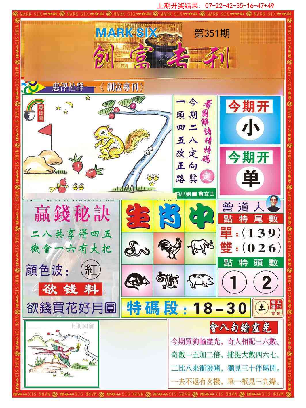 351期:《特邀高手》《来料九码》独家发表√ 【六点来料】